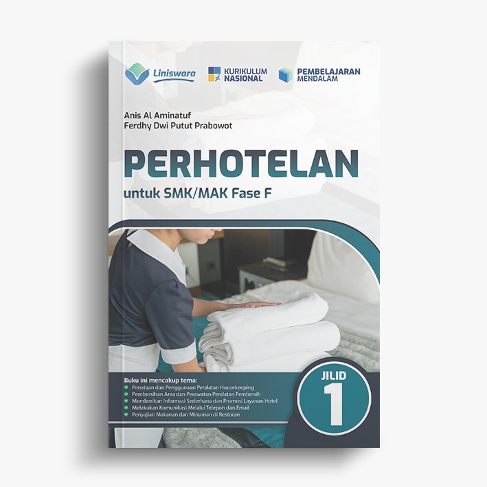 Judul: Perhotelan SMK/MAK Fase F Jilid 1Penulis: Anis Al Aminatuf, Ferdhy Dwi Putut PrabowoEditor: Moch. Syahrul FadillahJumlah Halaman: 221Buku ini disusun untuk mendukung proses pembelajaran yang efektif, aktif, dan bermakna, serta membantu peserta didik dalam memahami materi secara sistematis dan aplikatif. Di dalamnya telah dilengkapi dengan metode pembelajaran yang kontekstual, tugas-tugas yang merangsang pemikiran kritis, aktivitas pembelajaran yang mendorong keterlibatan aktif, serta uji kompetensi pada setiap bab untuk memastikan ketercapaian tujuan pembelajaran secara menyeluruh.Materi dalam buku ini terbagi ke dalam lima bab utama, yaitu 1) Penataan dan Penggunaan Peralatan Housekeeping; 2) Pembersihan Area dan Perawatan Peralatan Pembersih; 3) Memberikan Informasi Sederhana dan Promosi Layanan Hotel; 4) Melakukan Komunikasi Melalui Telepon dan Email ; serta 5) Penyajian Makanan dan Minuman di Restoran. Setiap bab disusun secara terstruktur agar peserta didik tidak hanya memahami aspek teoretis, tetapi juga terampil dalam praktik kerja lapangan sesuai standar kompetensi industri.