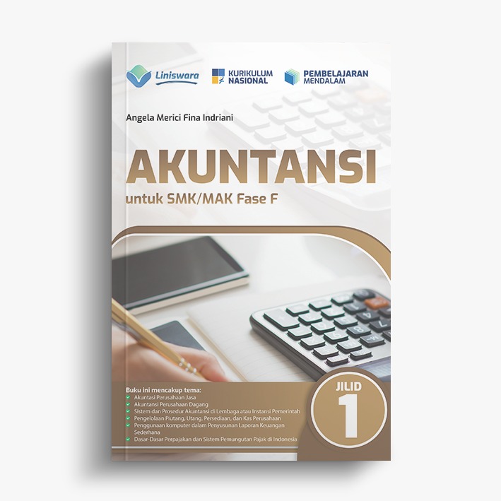 Judul: Akuntansi SMK/MAK Fase F Jilid 1Penulis: Angela Merici Fina IndrianiEditor: Lukita Elva NabilaJumlah Halaman: 251Buku Akuntansi SMK/MAK Fase F Jilid 1 disusun untuk mendukung proses pembelajaran yang efektif, aktif, dan bermakna, serta membantu peserta didik dalam memahami materi secara sistematis dan aplikatif. Di dalamnya telah dilengkapi dengan metode pembelajaran yang kontekstual, tugas-tugas yang merangsang pemikiran kritis, aktivitas pembelajaran yang mendorong keterlibatan aktif, serta uji kompetensi pada setiap bab untuk memastikan ketercapaian tujuan pembelajaran secara menyeluruh.Materi dalam buku ini terbagi ke dalam empat bab utama, yaitu 1) Akuntansi Perusahaa Jasa; 2) Akuntansi Perusahaan Dagang; 3) Akuntansi Lembaga atau Instansi Pemerintah; 4) Akuntansi Keuangan; 5) Komputer Akuntansi; serta 6) Perpajakan. Setiap bab disusun secara terstruktur agar peserta didik tidak hanya memahami aspek teoretis, tetapi juga terampil dalam praktik kerja lapangan sesuai standar kompetensi industri.